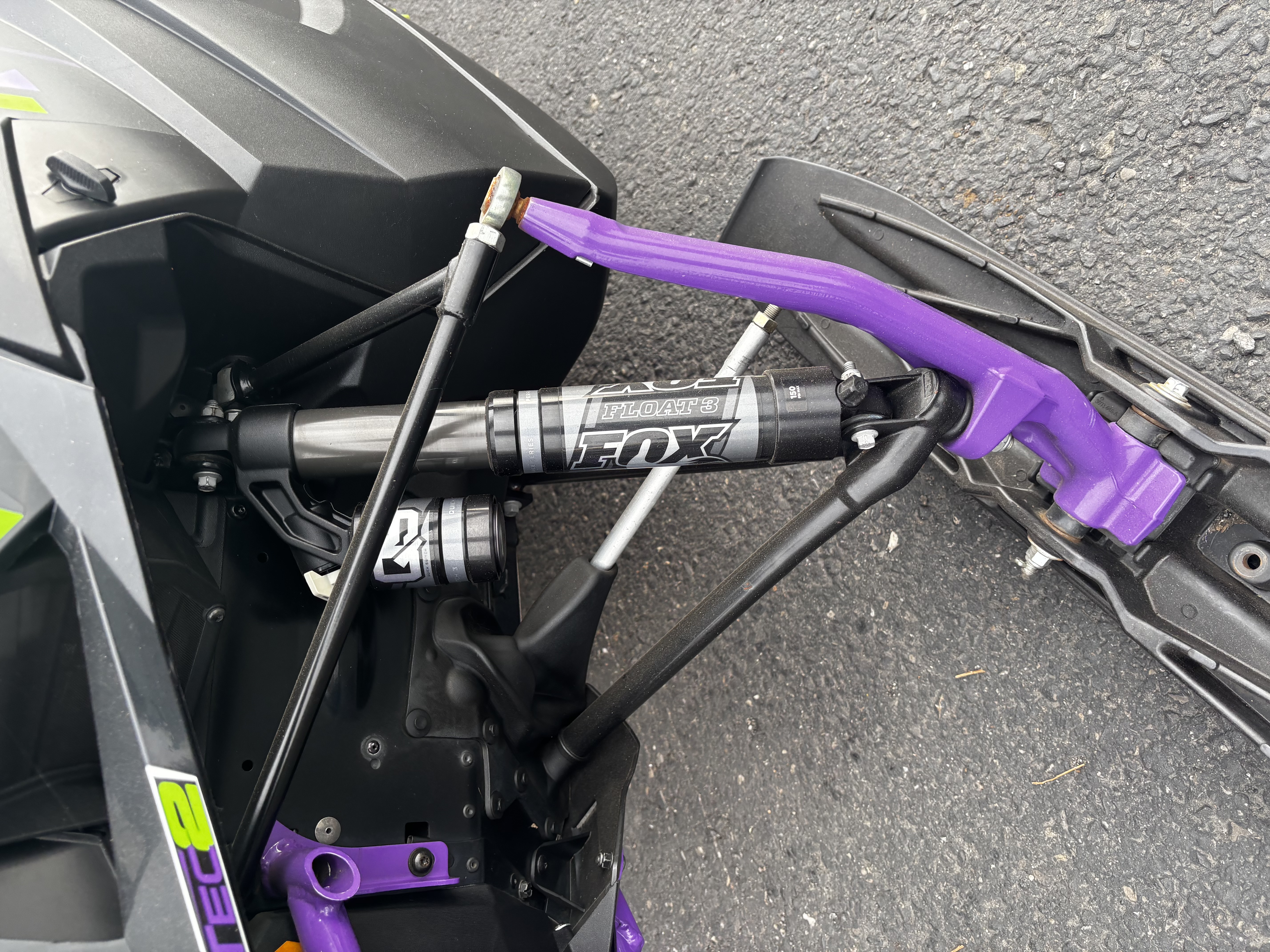 ARCTIC MOUNTAIN FRONT SUSPENSION WITH FOX FLOAT 3 QS3 SHOCKSLightweight, forged-aluminum spindles have less surface area than the previous design, reducing drag and improving performance in deep snow. Also, dual-phase high strength alloy-steel A-arms are lighter than previous designs. FOX FLOAT 3 QS3 shock lets you adjust your shocks to suit the riding conditions without removing your gloves. Set the clicker to 1 for a softer ride. Click it up a notch to setting 2, and youll be able to take on any bump. Or click up to 3 for a stiffer ride to take on whatever the backcountry has to offer.